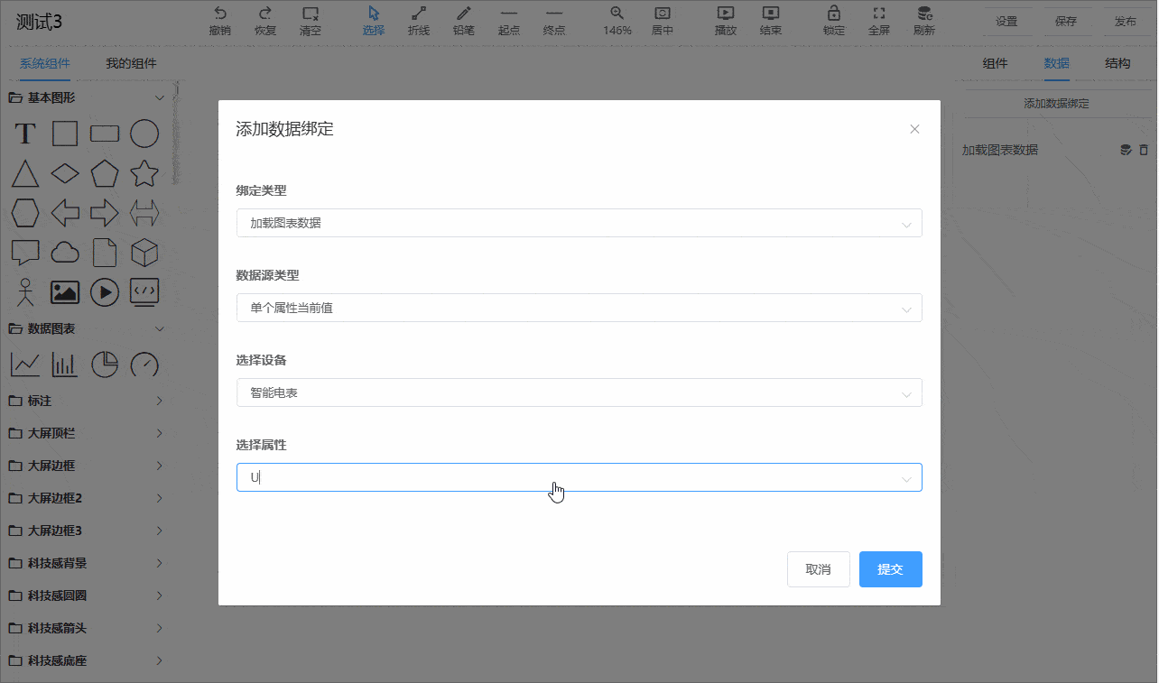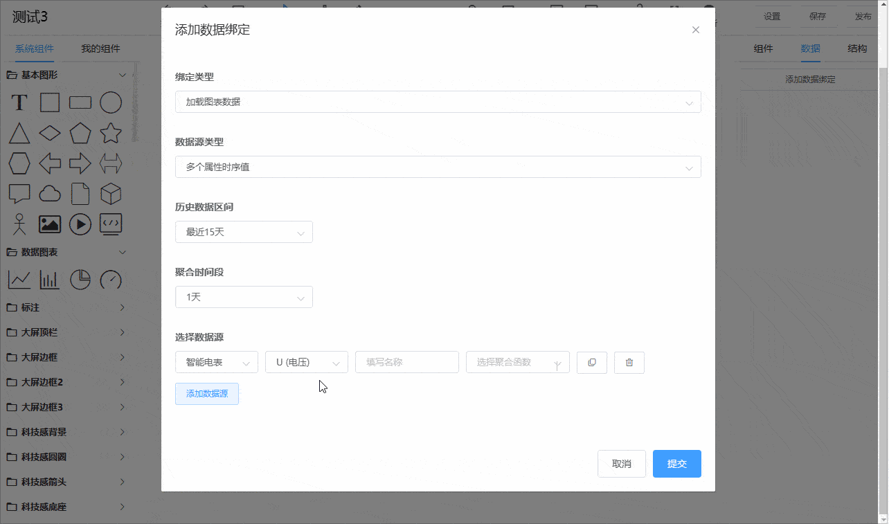 您可以给任何闭合图形,设置一个绑定到进度条的设备属性,例如将设备上报的温度属性绑定到这个矩形图形上,一个进度条就制作完成了,可以继续设置图形样式,将进度条用在任何场景中。