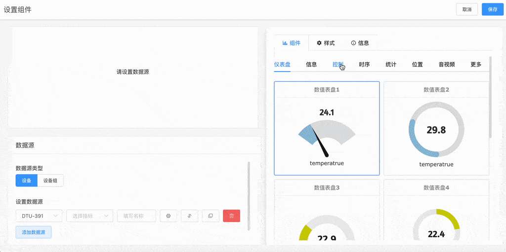 如果要在看板中直接控制设备的枚举属性值,可以使用全新的 枚举控制 组件,如下图: